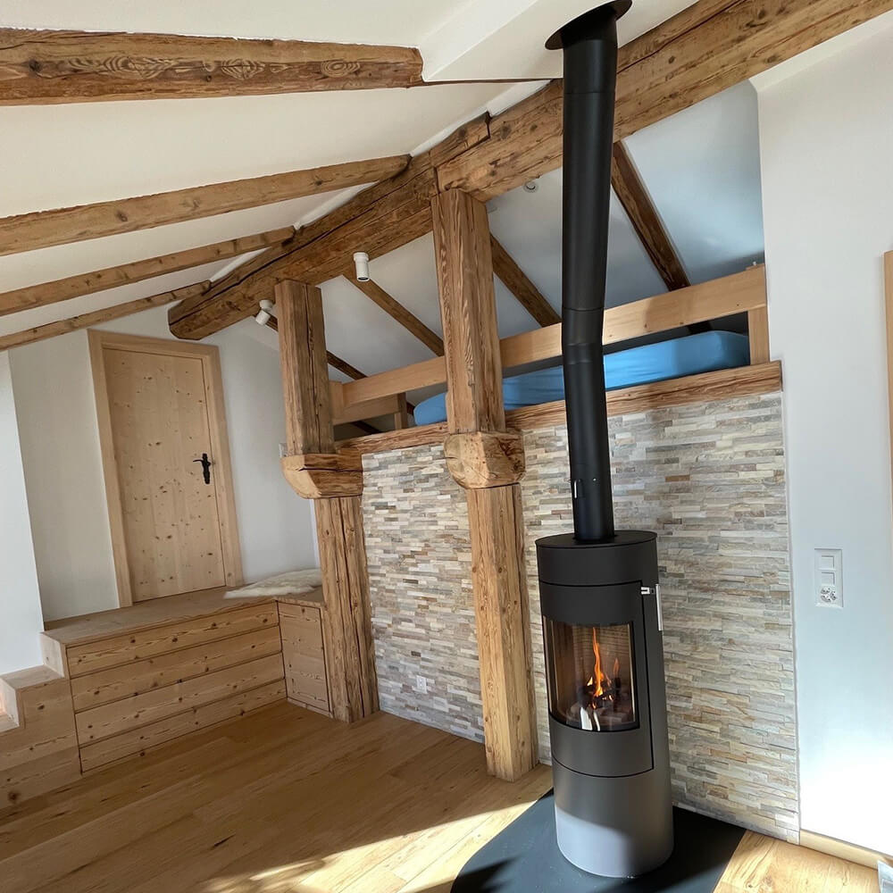 Kaminofen Attika Viva 120 im Ferienhaus in Bergün.